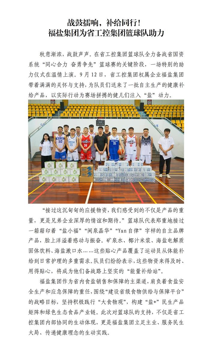 戰(zhàn)鼓擂響,補(bǔ)給先行!福鹽集團(tuán)為省工控集團(tuán)籃球隊(duì)助力