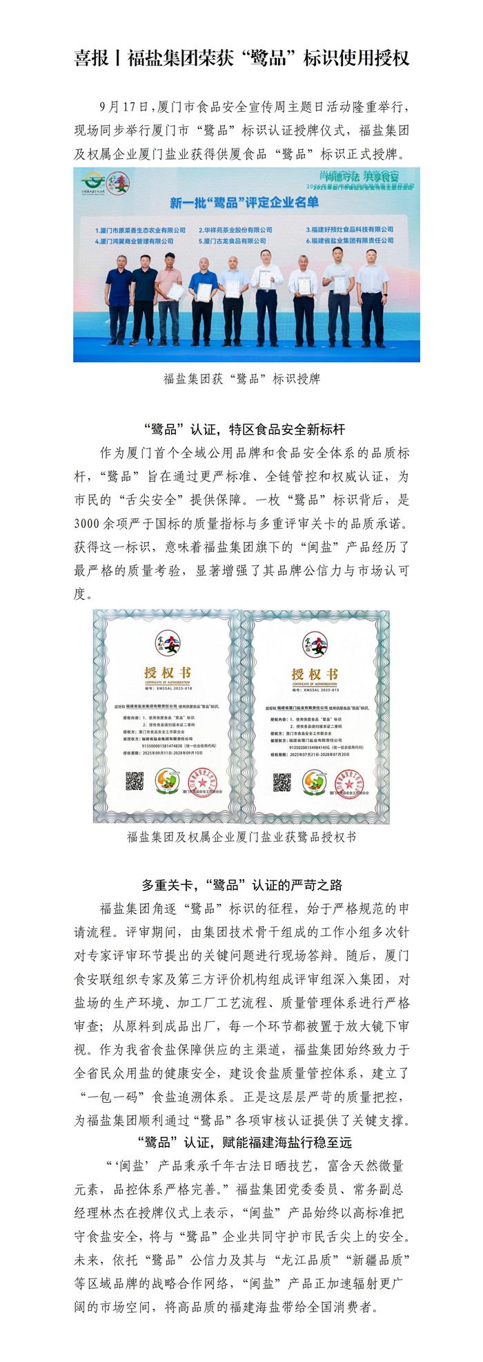 發(fā)布者:福建省廈門鹽業(yè)有限責任公司 發(fā)布時間:2025/9/19 8:54:00 閱讀: