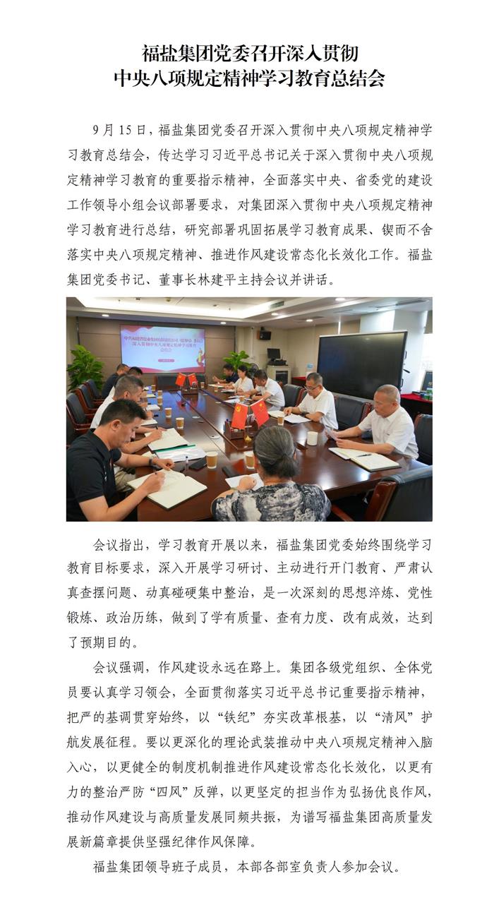 福鹽集團(tuán)黨委召開(kāi)深入貫徹中央八項(xiàng)規(guī)定精神學(xué)習(xí)教育總結(jié)會(huì)