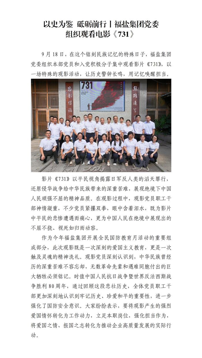 以史為鑒 砥礪前行丨福鹽集團(tuán)黨委組織觀看電影《731》