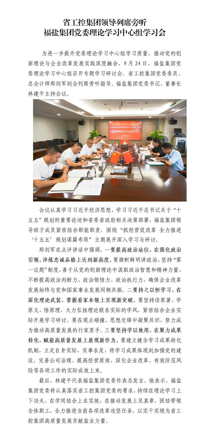省工控集團領導列席旁聽福鹽集團黨委理論學習中心組學習會