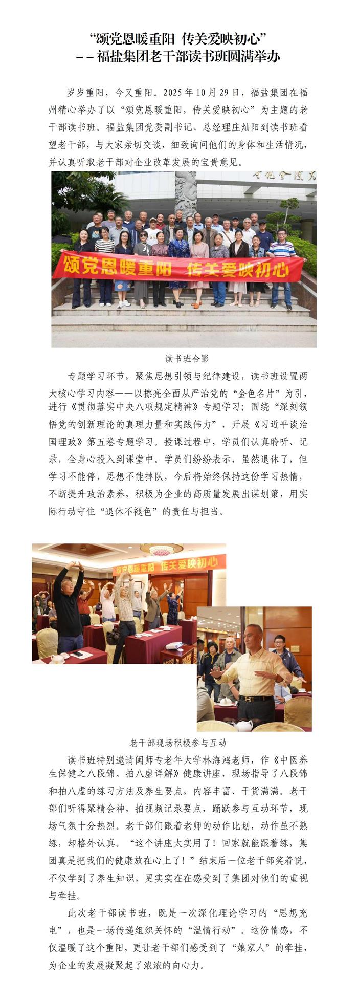 “頌黨恩暖重陽 傳關(guān)愛映初心”--福鹽集團(tuán)老干部讀書班圓滿舉辦