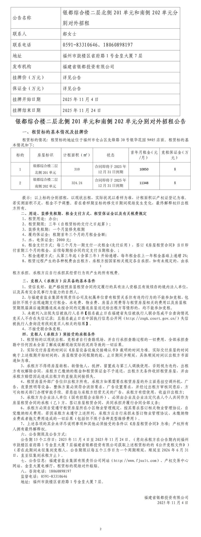 銀都綜合樓二層北側(cè)201、南側(cè)202房產(chǎn)分別對外招租公告